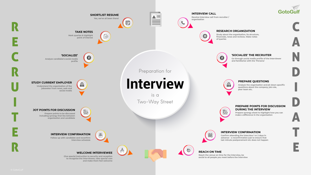 and prepare for the interview as well. This infograph depicts the process of interview preparation for both candidate and the recruiter.